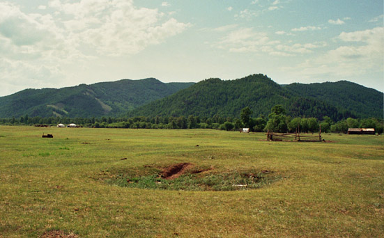 L’après-midi, poursuite de la randonnée dans cette vallée bordée de collines boisées. Un cimetière est juché au sommet d’une colline, et nous croisons quelques tombes isolées. Sur la stèle figurent le nom du défunt, ses dates de naissance et de mort, une épitaphe ; au-dessus, on retrouve les mêmes symboles du feu, du soleil et de la lune que dans le soyembo. Jadis, les sépultures, en particulier celles de personnages importants, étaient placées en hauteur, sur des montagnes (évoquées par les chamans comme des « yourtes de rocher »).