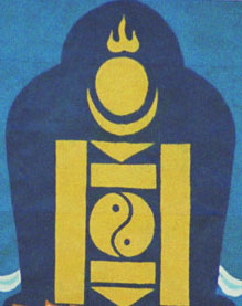 Le soyembo est un emblème complexe et riche de symbolique. C’est la première lettre d’un alphabet créé au 17ème siècle. Il est surmonté d’une langue de feu à trois pointes qui représente le passé, le présent et l’avenir de la nation, la perpétuation et la prospérité de la famille. En dessous, le cercle et un croissant sont le soleil-mère et la lune-père. Les deux triangles pointant vers le bas représentent deux flèches, symbolisant la victoire sur les ennemis, la volonté de liberté et d’indépendance de la nation. Les deux rectangles représentent la droiture, l’honnêteté (il y en a deux, ce qui peut être interprété par le fait que dirigeants et dirigés doivent faire preuve de ces qualités). Au centre, deux symboles entrelacés pour l’unité des éléments naturels : feu et eau, terre et ciel, homme et femme. On peut aussi les voir comme deux poissons symbolisant la vigilance (les poissons ne ferment jamais les yeux). L’ensemble est encadré par deux rectangles verticaux qui représentent l’unité de la nation et l’amitié.