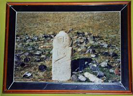 Nous faisons notre halte désormais habituelle, cette fois chez des Kazakhs. Par rapport aux yourtes précédemment visitées, celle dans laquelle nous sommes reçus est richement décorée, ce qui est caractéristique des habitations Kazakhs. Les murs sont recouverts de tapis de couleurs vives, le sol d’un tapis vert et d’une toile cirée colorée. Les perches du toit sont peintes de deux couleurs. S’il n’y a pas d’autel bouddhiste (les Kazakhs sont musulmans), il y a toujours les photos de famille. Pas de poêle, car, cet aïl comportant cinq yourtes, celle où nous nous trouvons sert uniquement aux réceptions et aux repas ; c’est dans une autre yourte (sur laquelle du fromage est mis à égoutter et à sécher) qu’est faite la cuisine. Sur les battants d’un meuble sont accrochées deux photos : une jeune femme asiatique faisant la publicité d’un dentifrice et... Estelle Halliday. Posé sur un meuble, un petit poste de radio portable diffuse en sourdine de la musique.